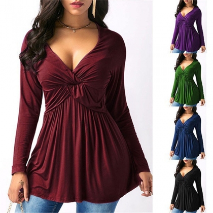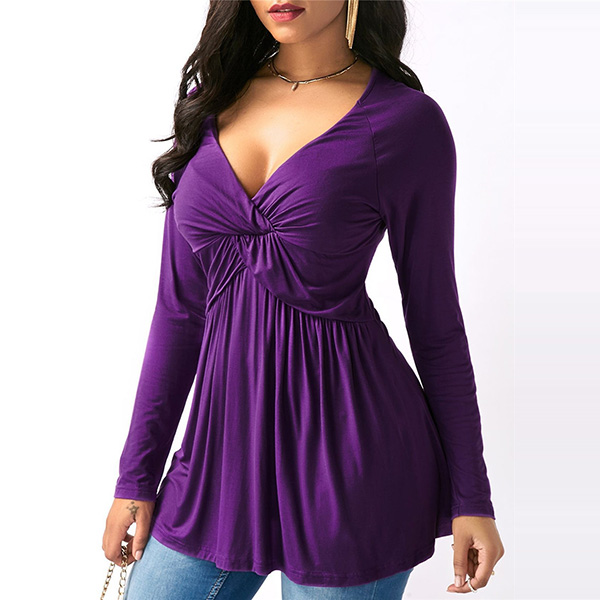 color,its soft and breathable fabric can give you an all-day comfort,while the v-neck and wrinkled details