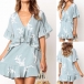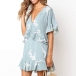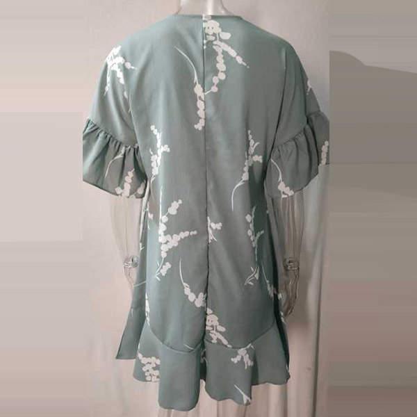 Sexy V-neck Lotus Sleeve Ruffle Hem Printed Dress
