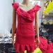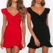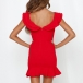 The solid color tone design can exude your an elagant vibes,while the v-neck and ruffle hem