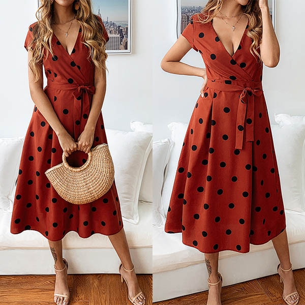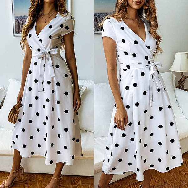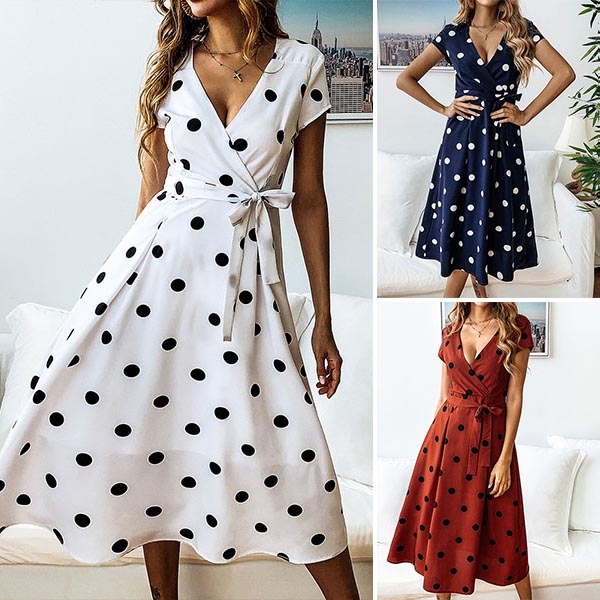 You can look stylish and charming with this dress from day to night. The dots printed details make