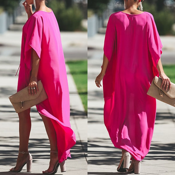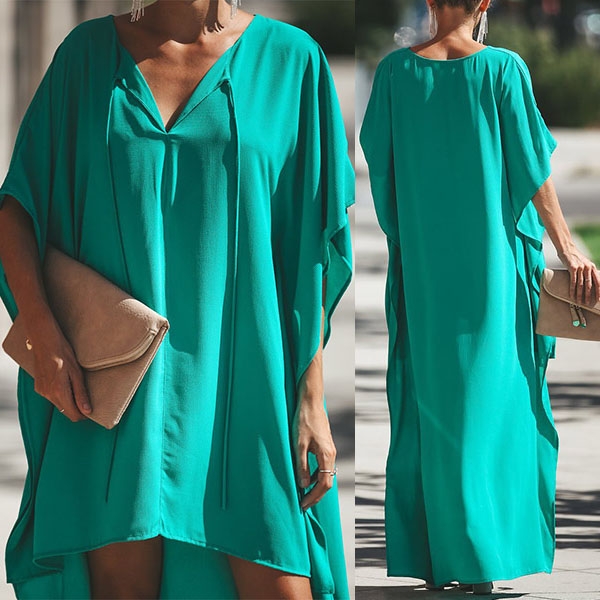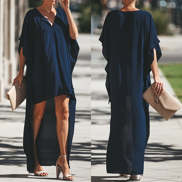 v-neck and a high-low hem,this dress will give you a chic and fashionable street look. If you wanna
