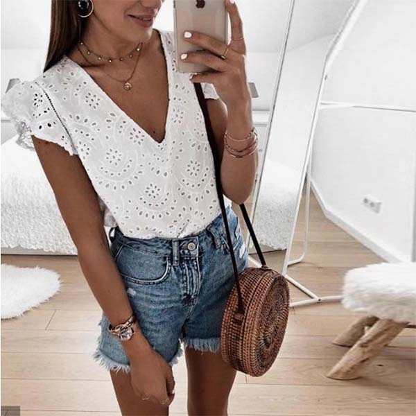 the v-neck and hollow out details make it look so attractive. No matter matching with a shorts,