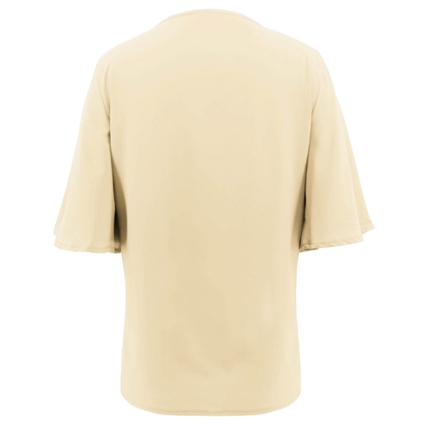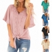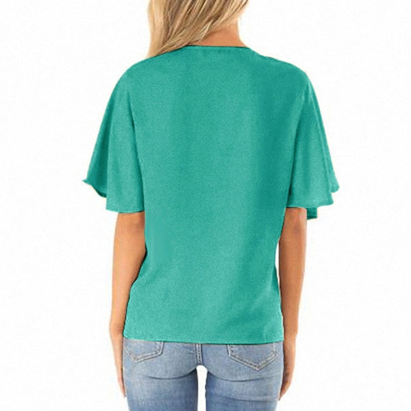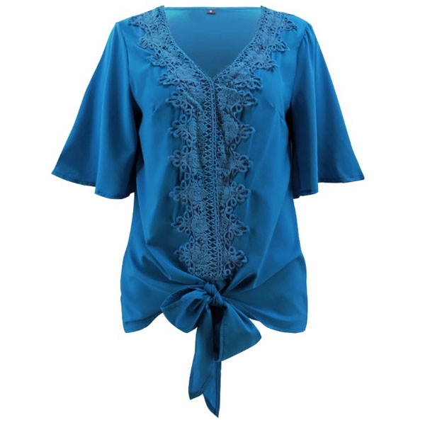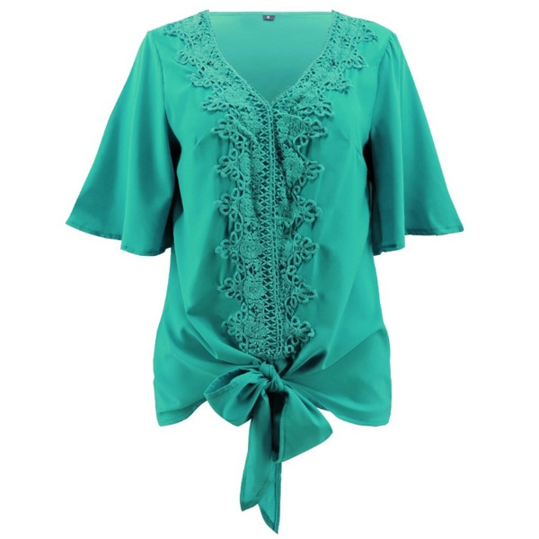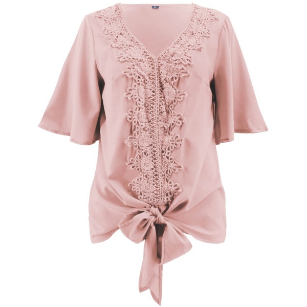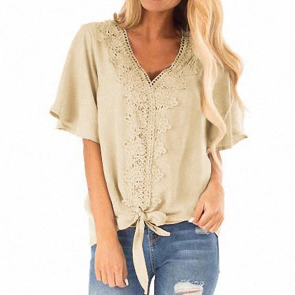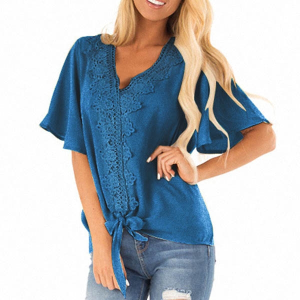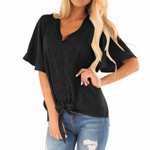 This t-shirt must fits your taste.It is finished with v-neck and short sleeve design,and the lace spliced
