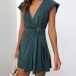 It is a good chance to boost your daily style with the help of this dress. Solid color style,the v-neck design