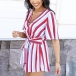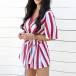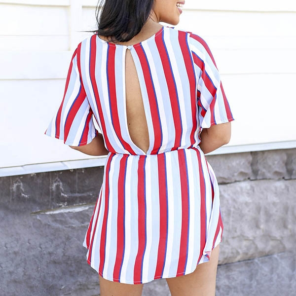 Sexy V-neck Short Sleeve Lace-up Striped Dress