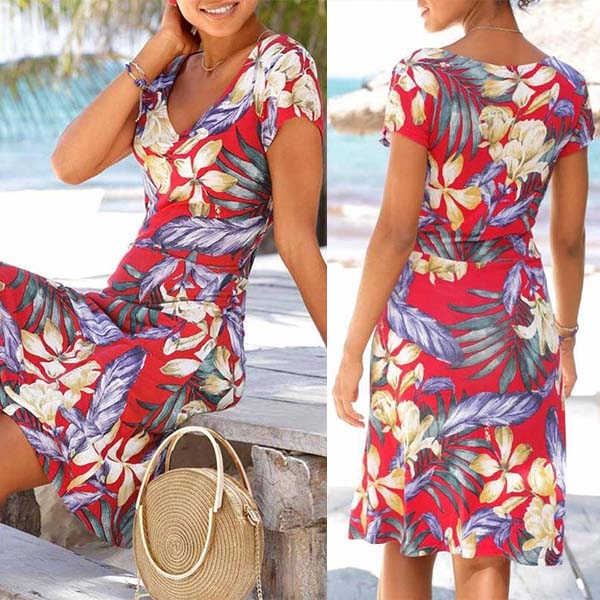 If you always go to the beach,you really need the beach dress.It comes with v-neck and short sleeve