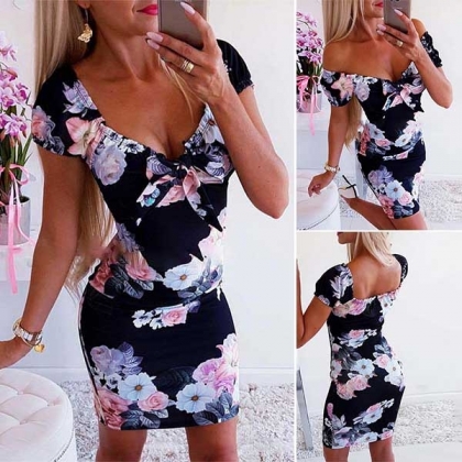 This dress which boasts vibrant floral print can help you win more eyes. It is finished with short sleeve,