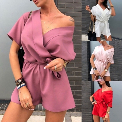 You can easily boost your daily style with the help of this romper. It comes with a solid color,the v-neck