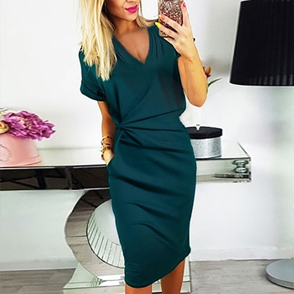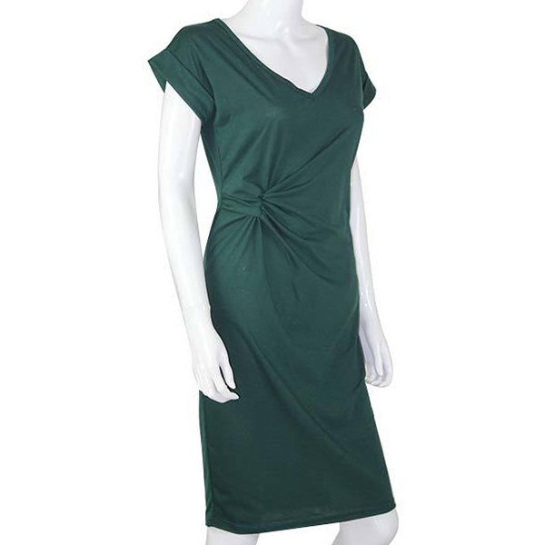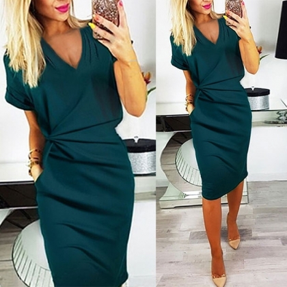 with short sleeve,v-neck and a fit silhouette,this dress can portray your elegant and charming image.