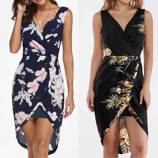Let your style make the ultimate statement wearing this beautiful printed dress. Its v-neck and high-low