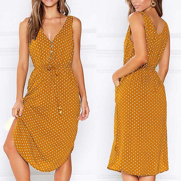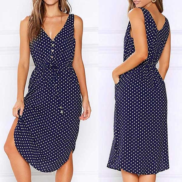 Finished with sleeveless,v-neck and high waist design,this dress makes it easy for