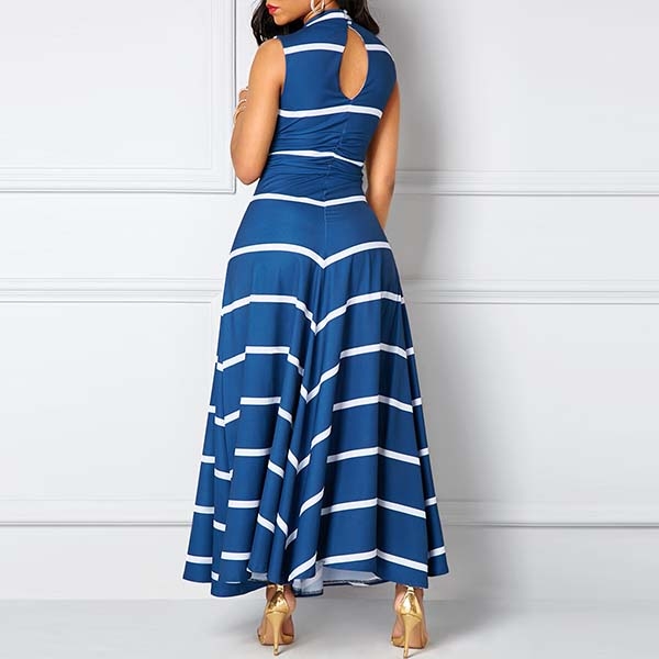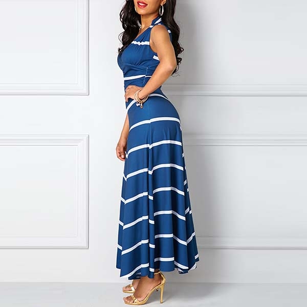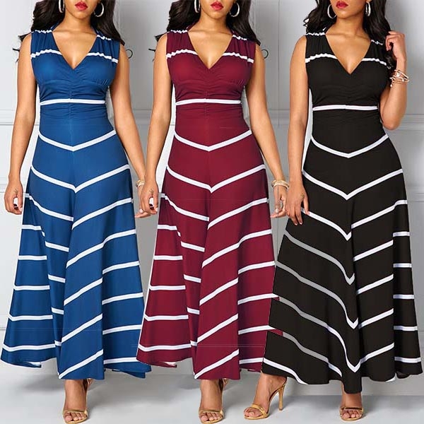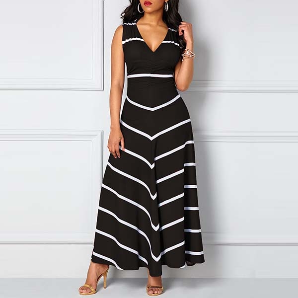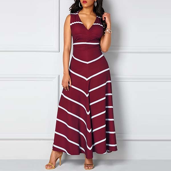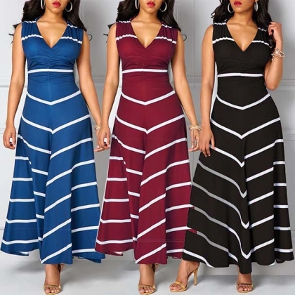 Sexy V-Neck Sleeveless High Waist Striped Dress(It falls small)