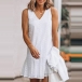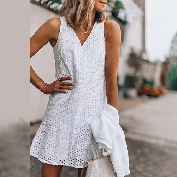 Exude your charming feminine appeal through this lace dress.It comes with v-neck,sleeveless