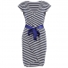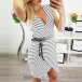 Designed with striped element,finished with sleeveless,v-neck,an irregular hem and a fit silhouette,this dress is a