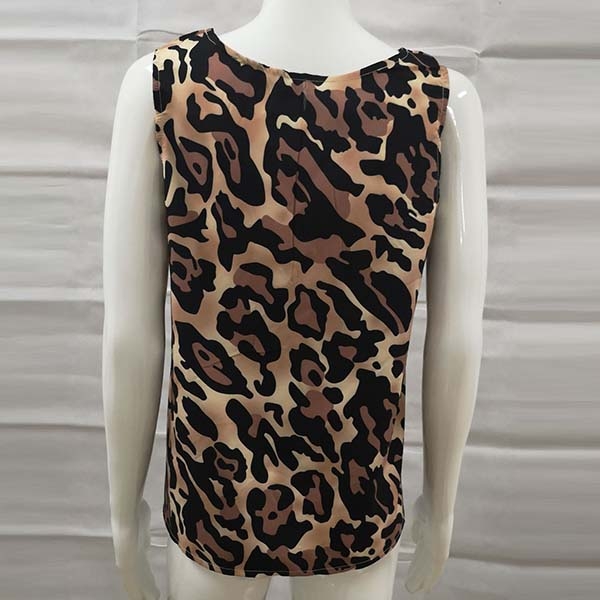 The v-neck design will further exude your charm. Finished with sleeveless and leopard printed details,