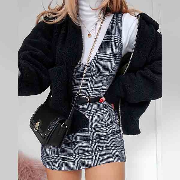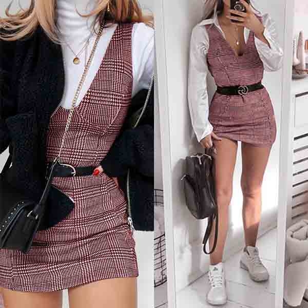 Enhance your charm on the weekend with this dress. Designed with plaid element,stylish yet popular.