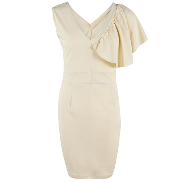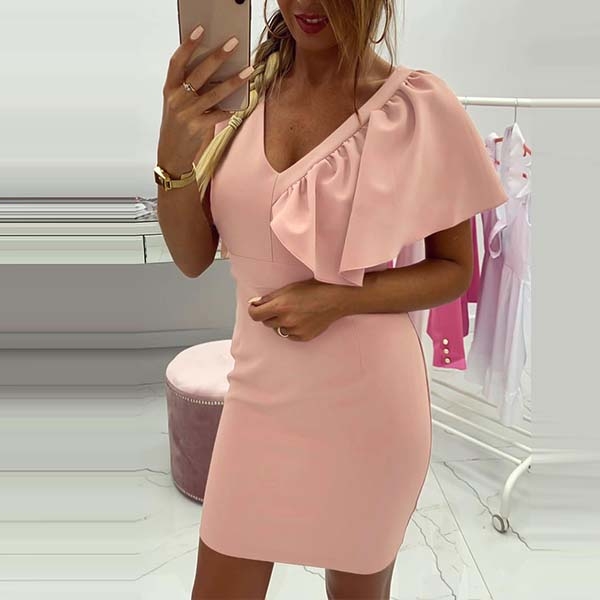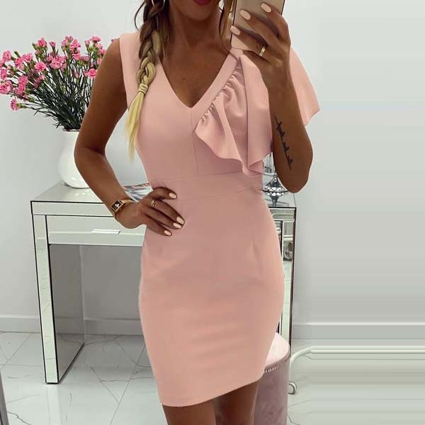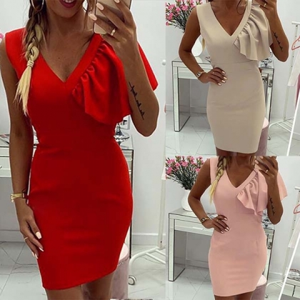 It boasts a solid color,with sleeveless,v-neck and ruffle design,which can easily enhance your feminine charm.