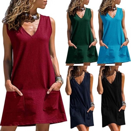 charming and attractive.With v-neck ,sleeveless and front-pocket design,this wonderful dress