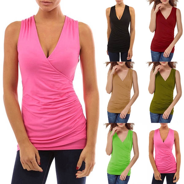 Greet the arrival of the summer season with this sleeveless t-shirt. Features a solid color,