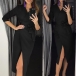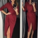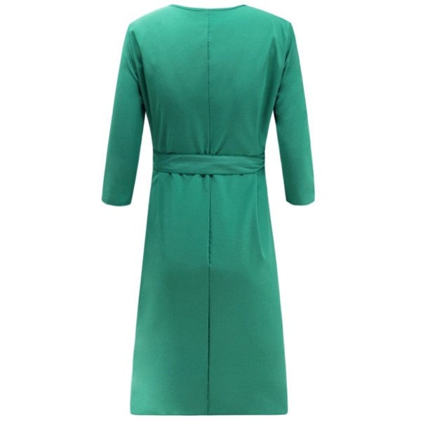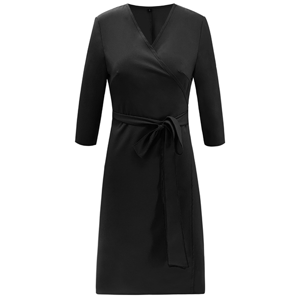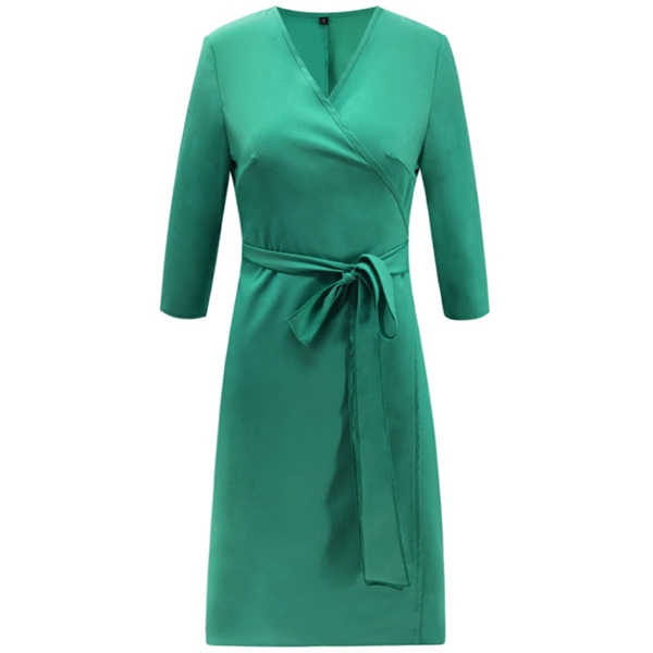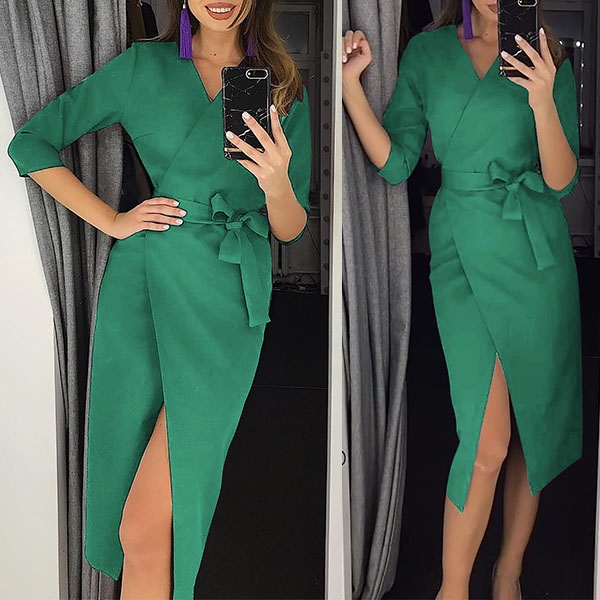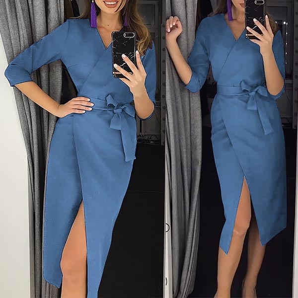and gatherings. It is finished with solid color,3/4 sleeve,v-neck and slit hem design,this dress can showcase