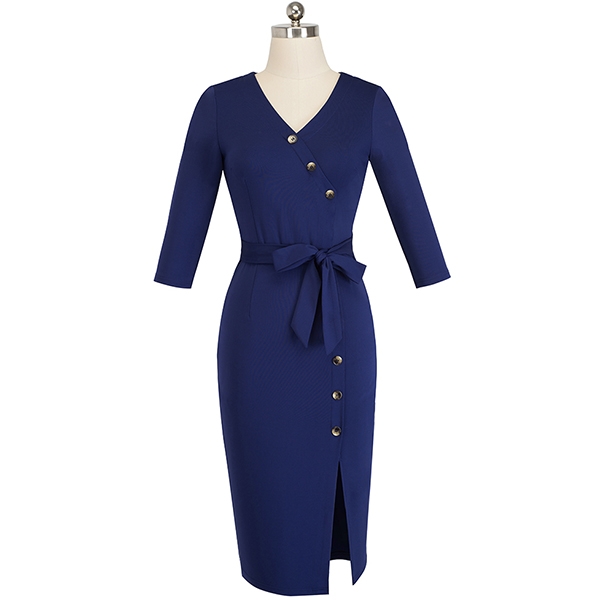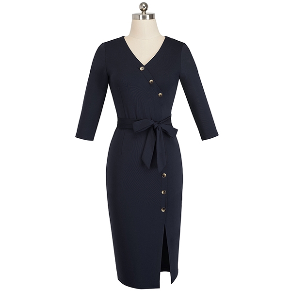 övergång.Den kommer med en enfärgad färg, designen med v-ringning och slitsfåll kan visa upp din sexiga och