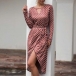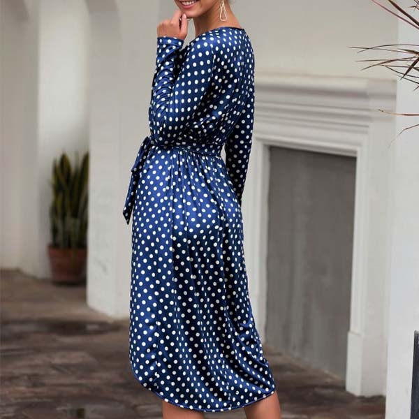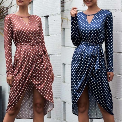 The dots printed details can offer you a more eye-catching and playful look,while the v-neck and slit