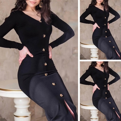 amplify your seductive curve,while the deep v-neck and slit hem can exude your charming feminine appeal.