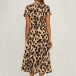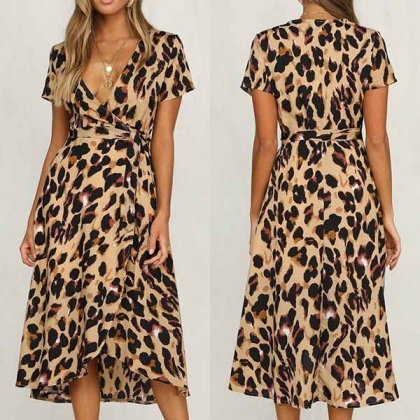 Skapa en charmig och vacker festlook med denna kortärmade klänning. Leopardtrycksdesignen gör
