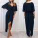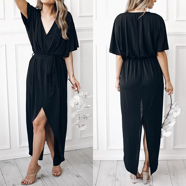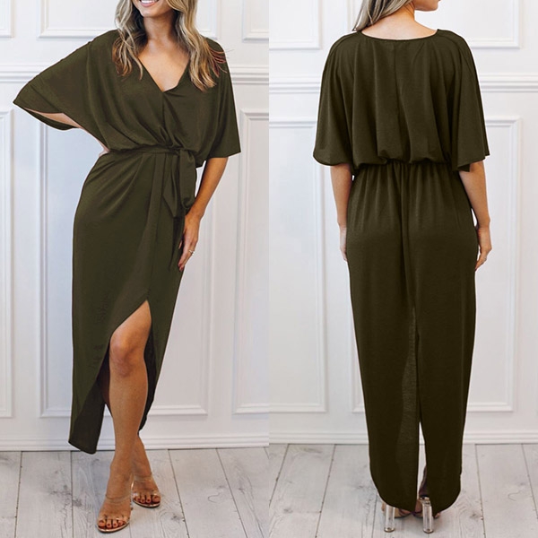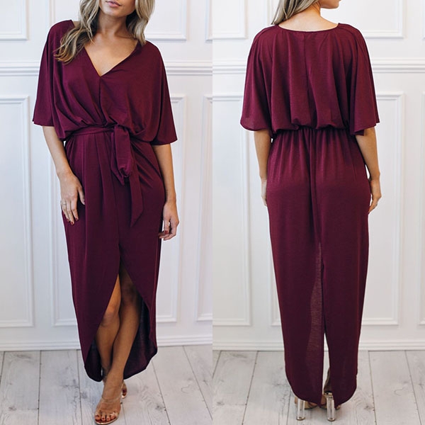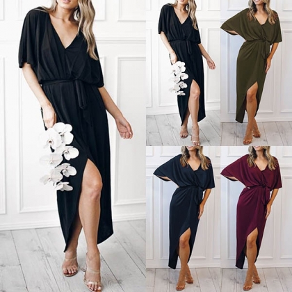 Cozy yet keeping it feminine,this dress is worth to arouse your attention. Solid color style,the v-neck and slit hem