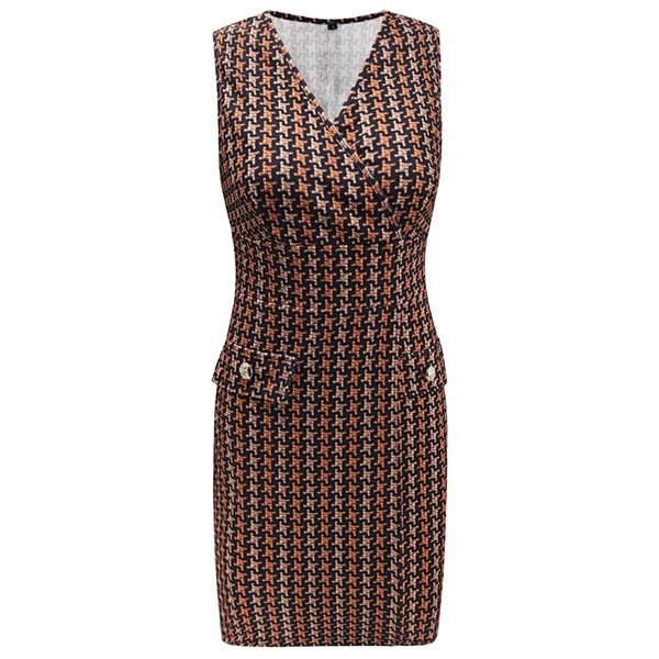 This sleeveless printed dress is designed with v-neck and slit hem design,which can exude your