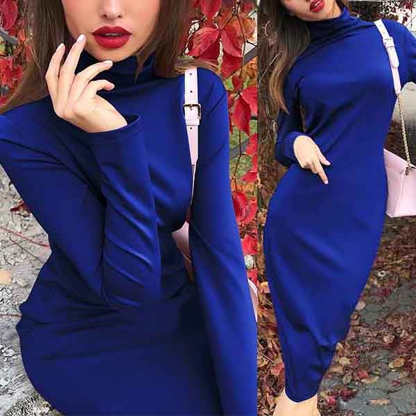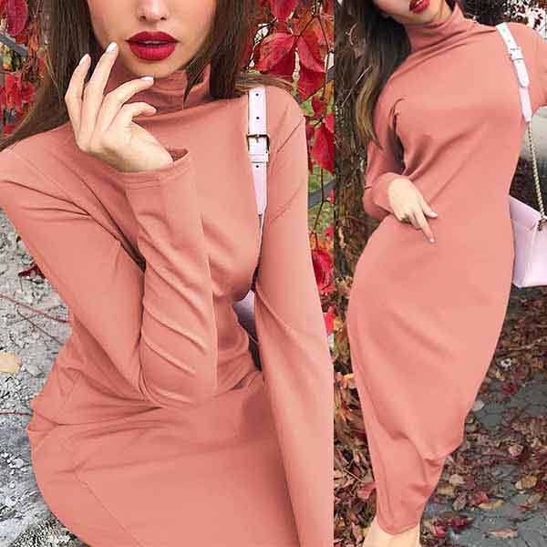 It comes with a solid color,finished with long sleeve,mock neck and a fit silhouette,this dress of course