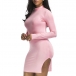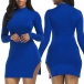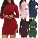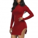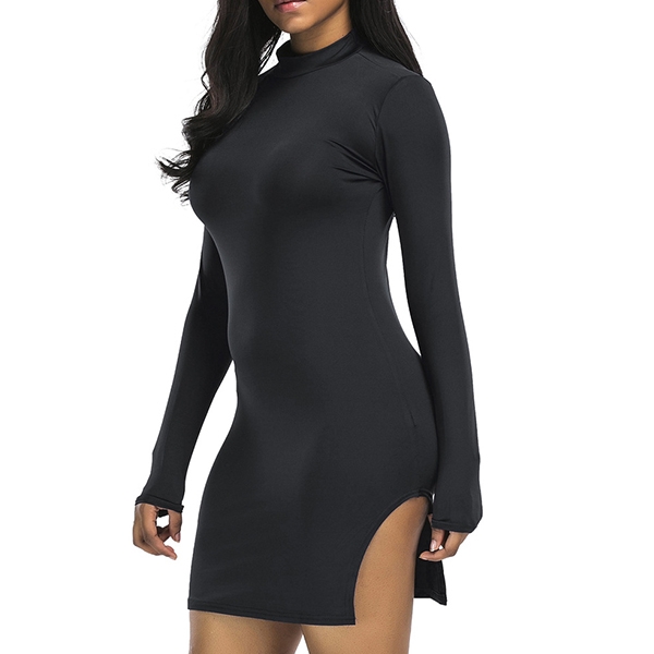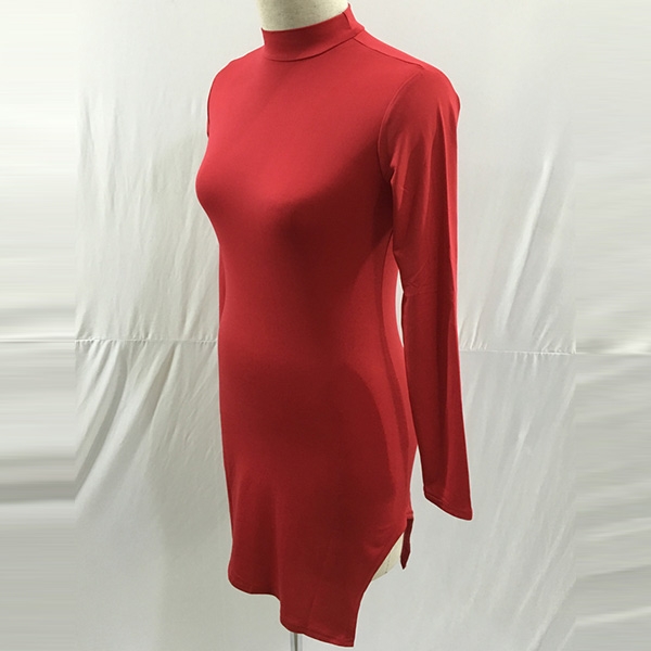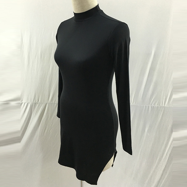 a solid color,simple yet generous. Finished with long sleeve,round neck,slit hem and a tight silhouette,