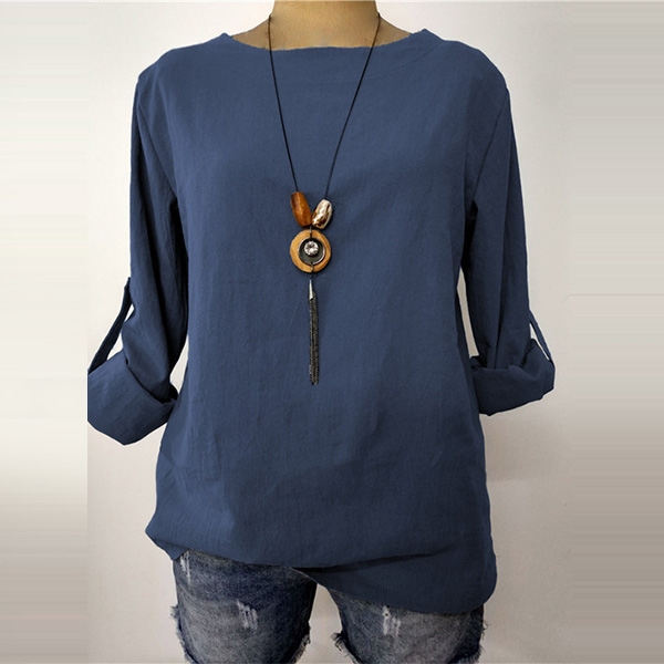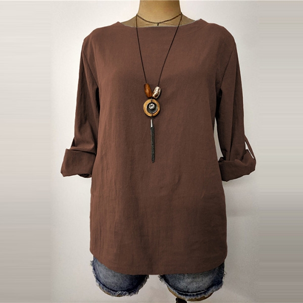 Boasts a solid color,crafted from soft and breathable fabric,accompanied with long sleeve,round neck and