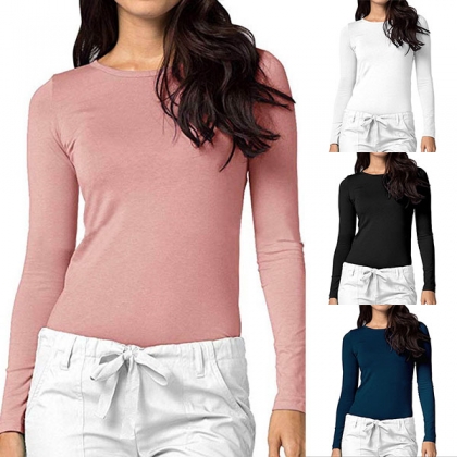 Crafted in a solid color,with long sleeve,round neck and a fit silhouette,simple in design but