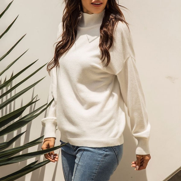 solid color,with long sleeve,turtleneck and a loose silhouette design,this piece can keep you