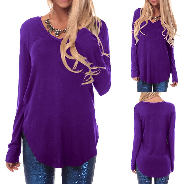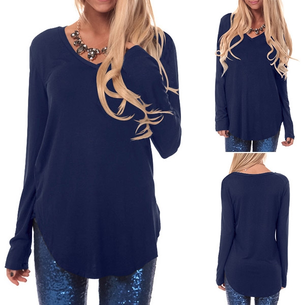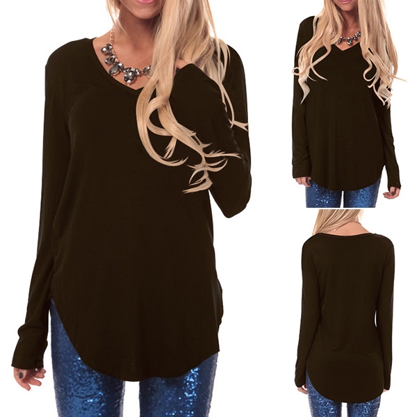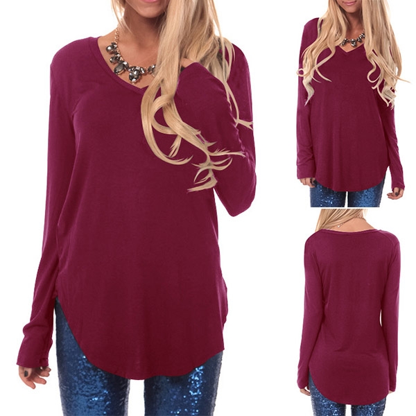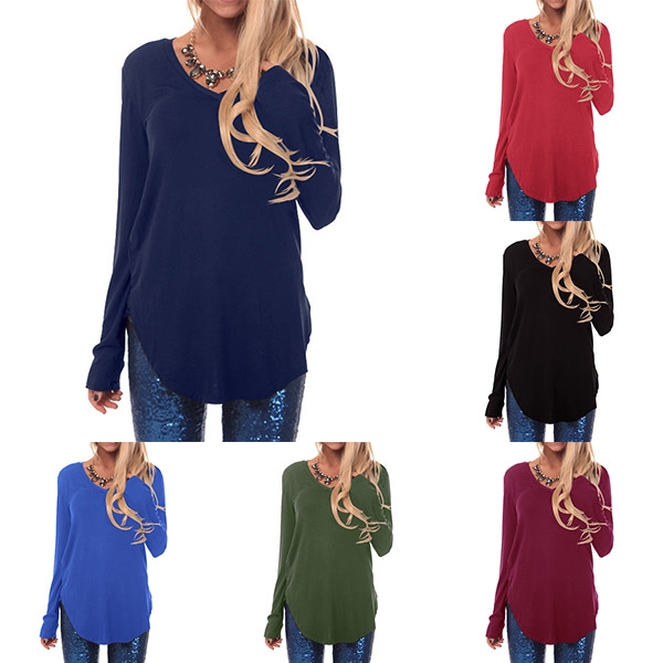 long sleeve,v-neck and arc hem,simple but comfortable to wear. No matter what kind of bottoms