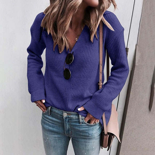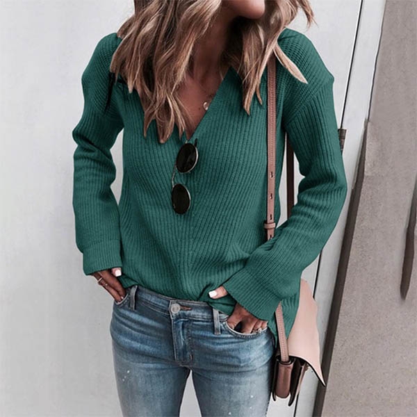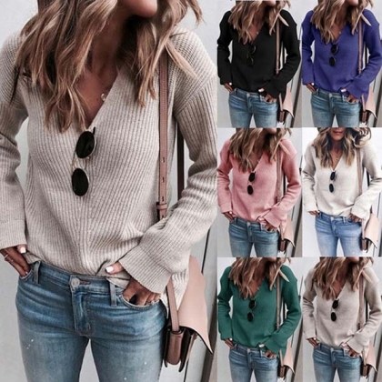 Boasts a solid color,with long sleeve,v-neck and a clean silhouette design,