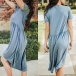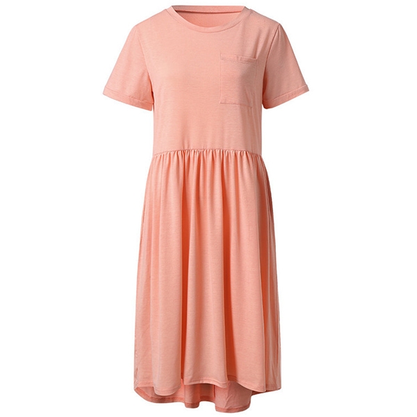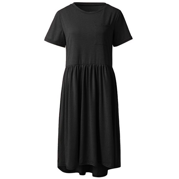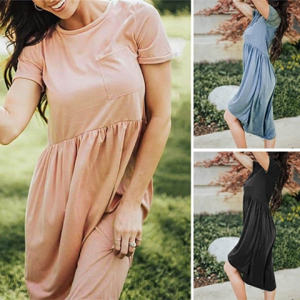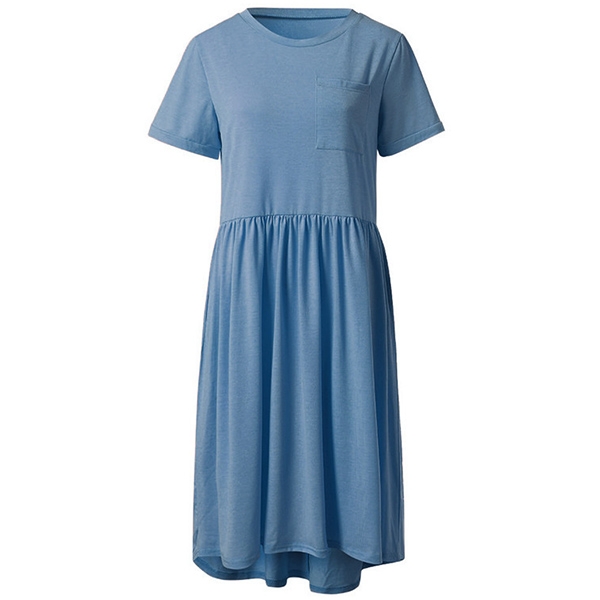 finished with short sleeve,round neck and a chest patch pocket,this dress is sure to offer you a
