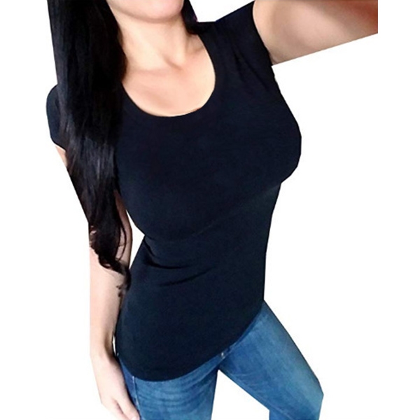 Crafted in a solid color,with short sleeve,round neck and a clean silhouette,