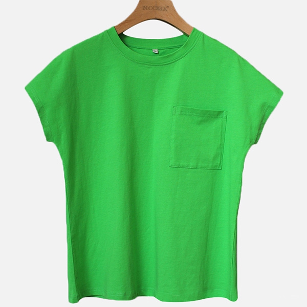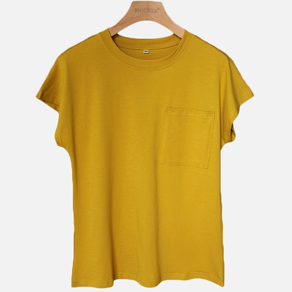 Boasts a solid color,finished with short sleeve,round neck and a chest pocket,this t-shirt can