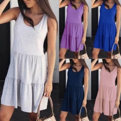 Solid color style,finished with sleeveless and round neck design,this wonderful piece of course