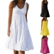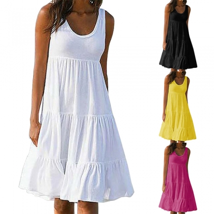 Enkel stil ärmfri enfärgad klänning med rund hals