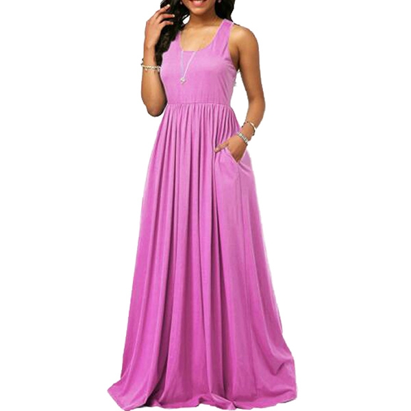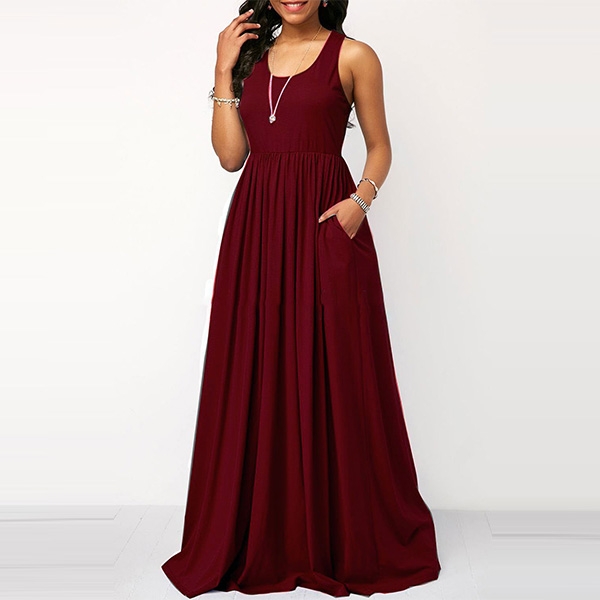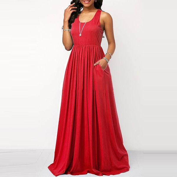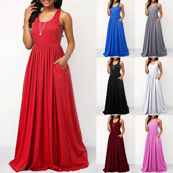 For these warm-weather days,this sleeveless dress would be a wise choice. It comes with a solid color,