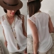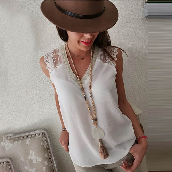 For these hot summer days,this sleeveless chiffon top would be your wise choice. Solid color style,
