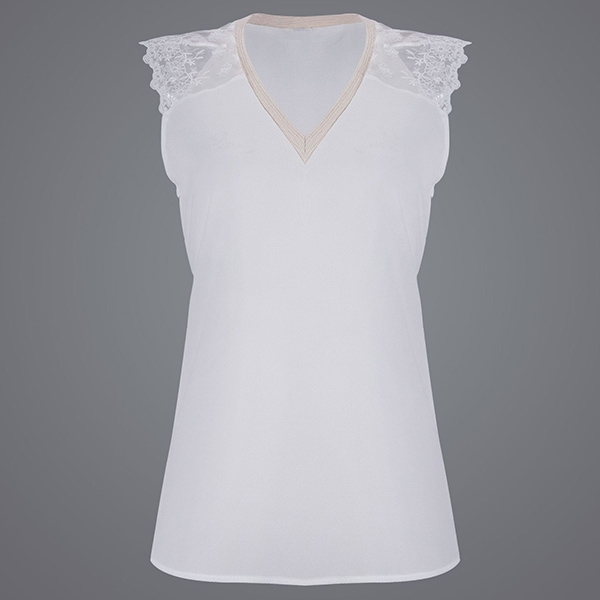 the v-neck and lace spliced design not only enriches the design style,but also boosts its charm.