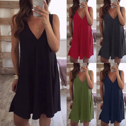 As for the hot summer days,this sleeveless dress can easily strike your mind. Solid color tone design