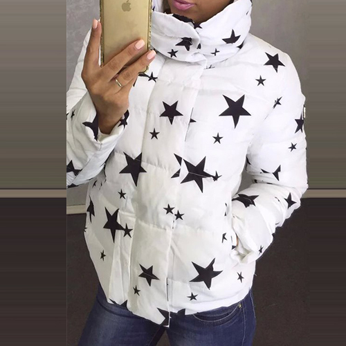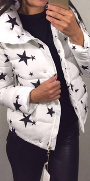You don't know what a surprise that this printed padded coat can bring for you. It is designed with stars or