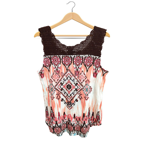 A new fashion comes with this knit tank tops. Boasting chic retro print pattern, with round neck and