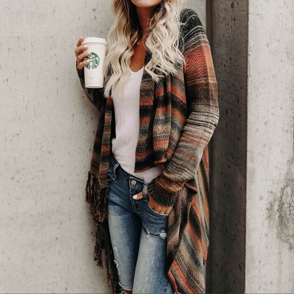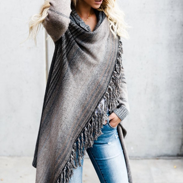 Contrast color style,accompanied with long sleeve and a tassels style ,