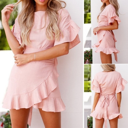 This dress is perfect to show your sexy style. Solid color style, outfitted with shoirt sleeve, round-neck style,
